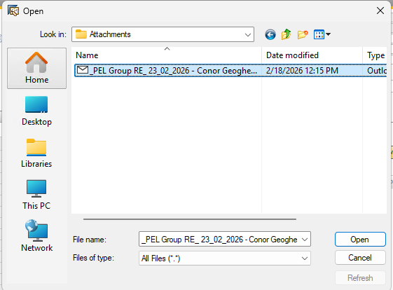 If all was done correctly you should see your files in it, once the first attachment done from that location it should be defaulted for the next time you do Browse