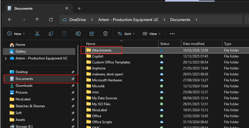 First of all we will need to create a folder where we are going to store files we want to add to SAP. Pick a location on your local drive using File Explorer, I'd suggest to use your Documents folder, just create an Attachments inside. Remember the path as we will need to open it in SAP later. (In my case path is "C:\Users\krapinevycha\OneDrive - Production Equipment Ltd\Documents\Attachments")